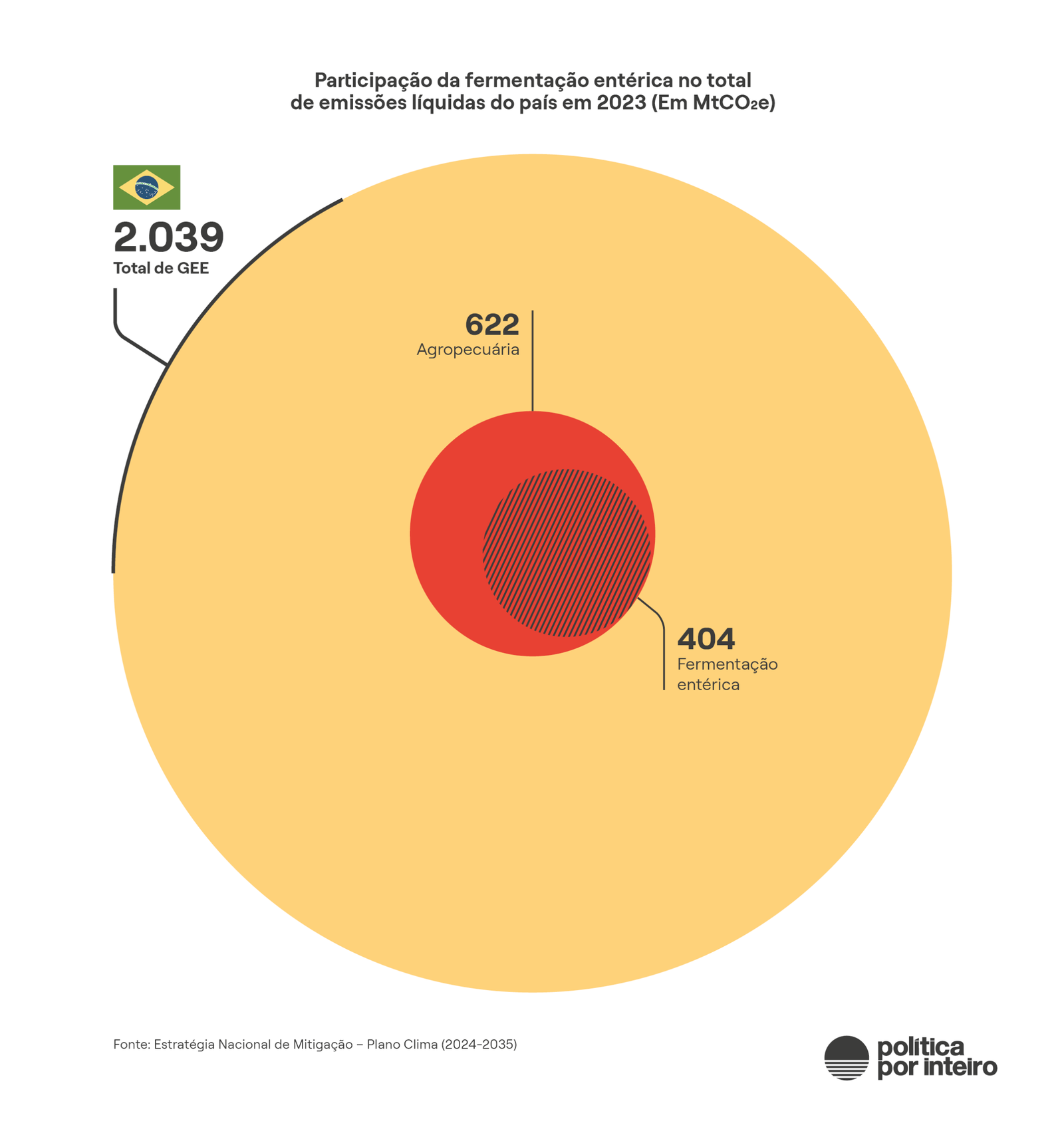 Só para uma medida de comparação, a fermentação entérica emite quase quatro vezes o volume de emissões de caminhões, ônibus rodoviários e da aviação doméstica juntos, que representam a maior parcela de queima de combustíveis fósseis no país.