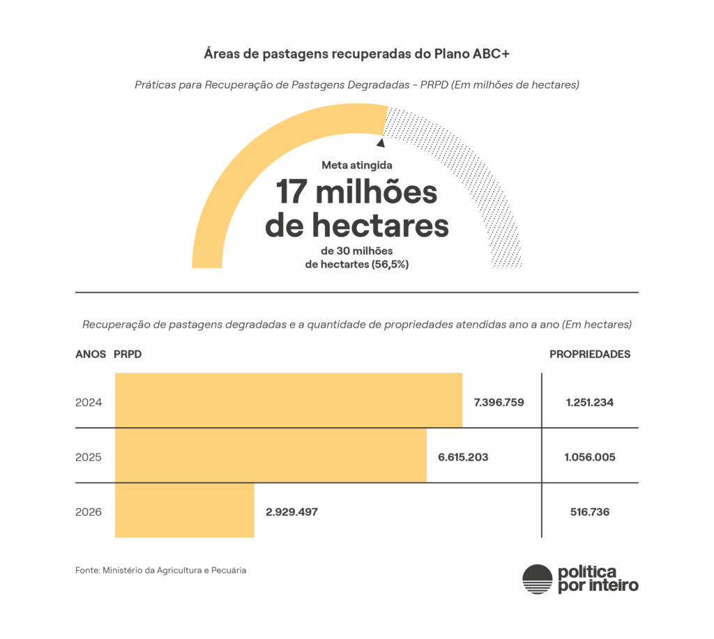 Durante a COP, o Ministério do Meio Ambiente anunciou(12) que 3,4 milhões de hectares de vegetação nativa haviam sido restaurados, pouco mais do que a quarta parte da meta para 2030. A maior parte desses 3,4 milhões de hectares corresponde à regeneração natural em Unidades de Conservação e Terras indígenas.