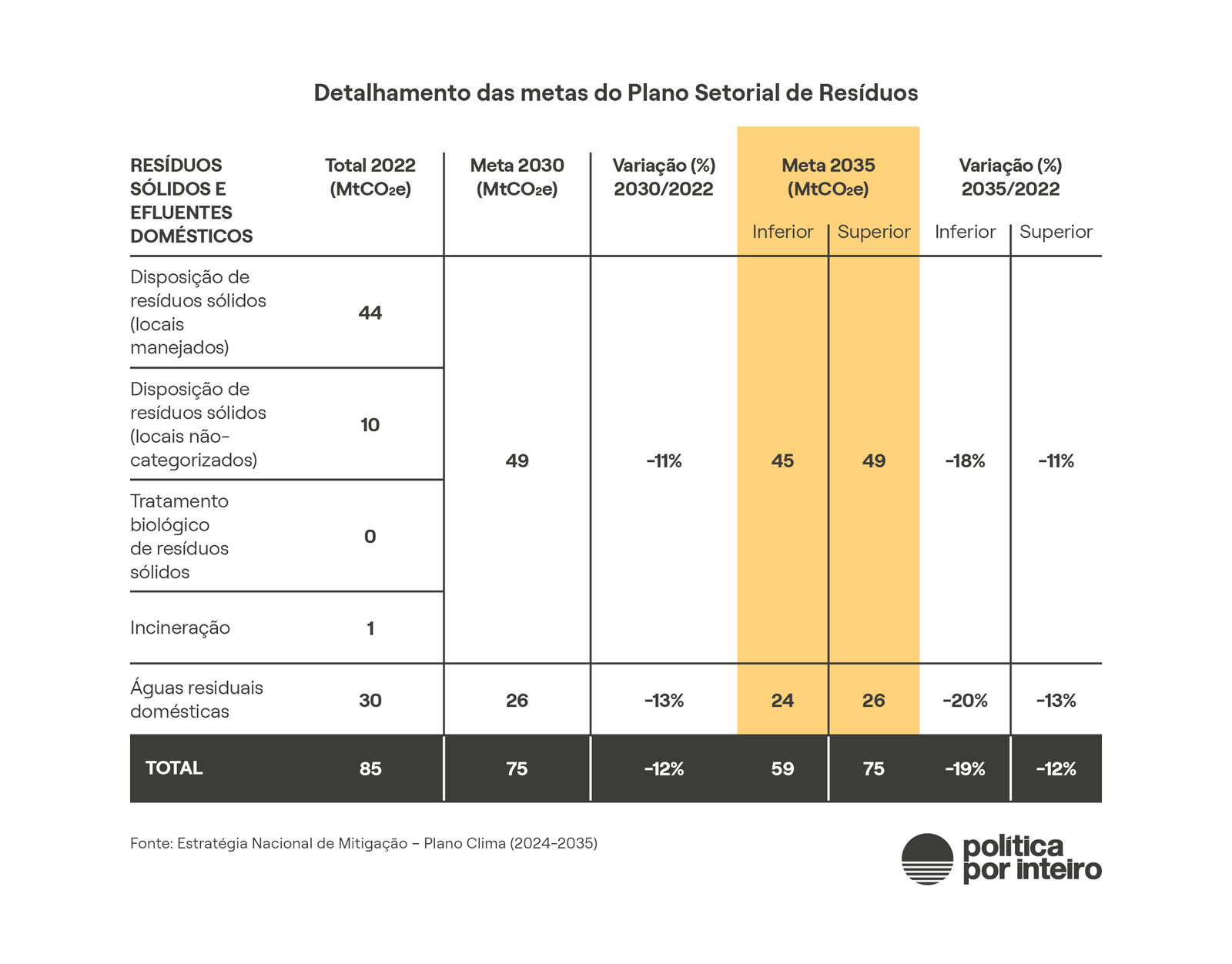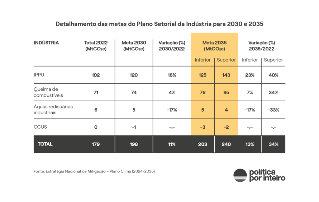 O intervalo estabelecido para 2035, entre 850 milhões de toneladas de CO2e e 1,05 Gt de CO2e foi objeto da NDC submetida pelo governo brasileiro à Convenção do Clima em novembro de 2024, durante a COP de Baku, no Azerbaijão.